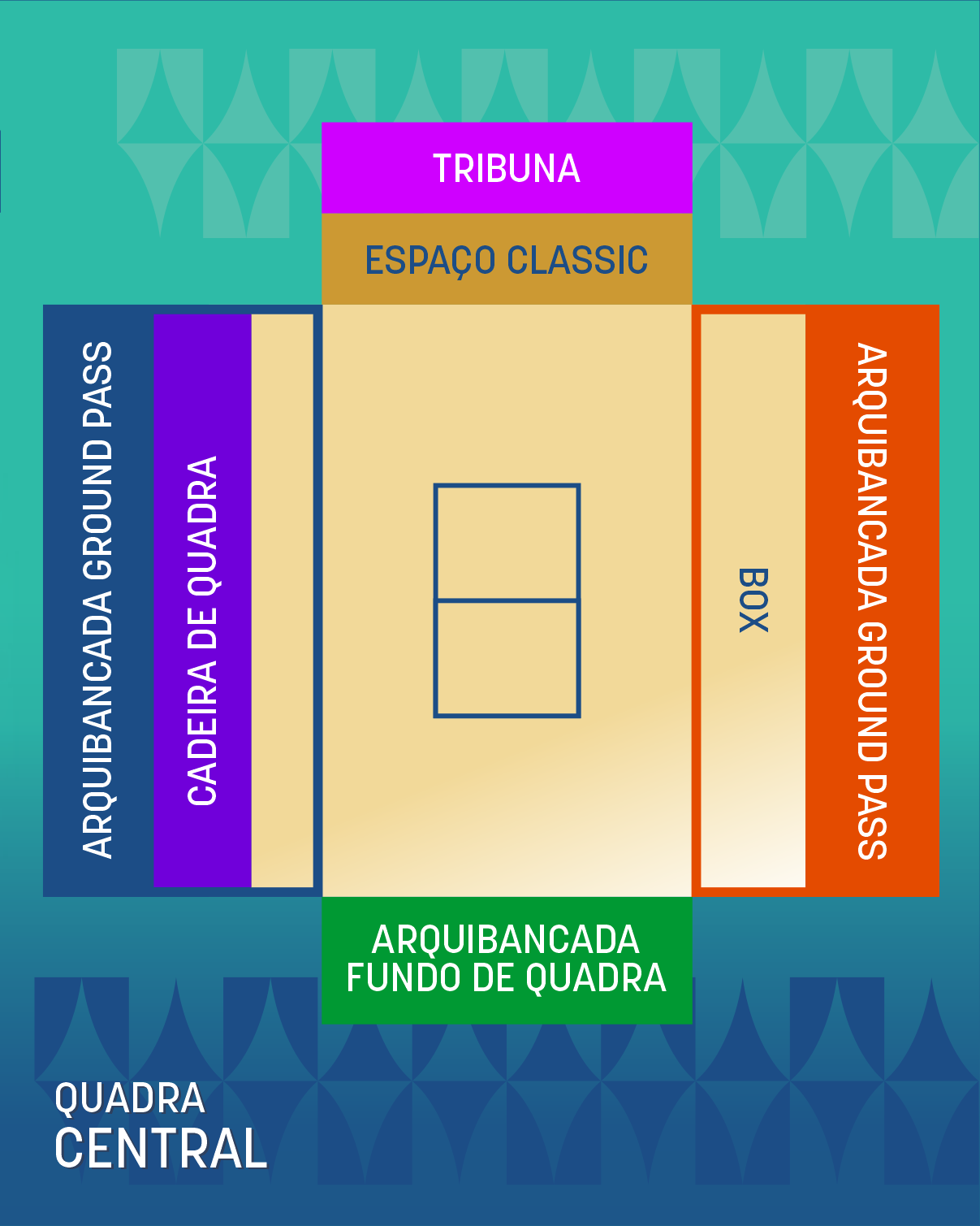 Neste espaço, os convidados terão todo o conforto para assistirem aos jogos da quadra central, COM LUGAR GARANTIDO NO FUNDO DA QUADRA NORTE, além de SERVIÇO DE OPEN BAR com água, cerveja e refrigerante.