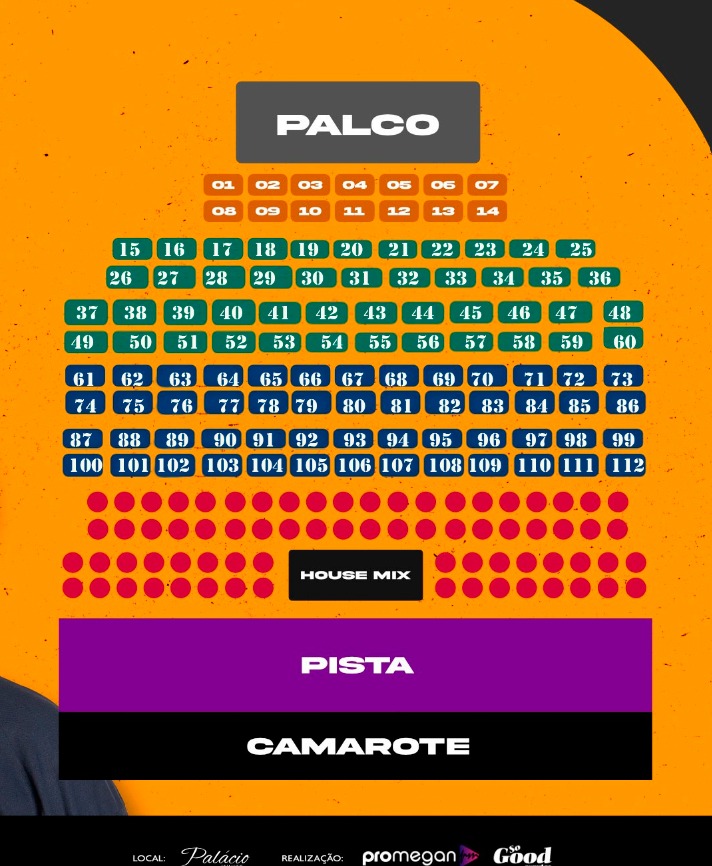 Mesa com 6 lugares, área mais nobre do evento, vista privilegiada do palco e atendimento diferenciado.