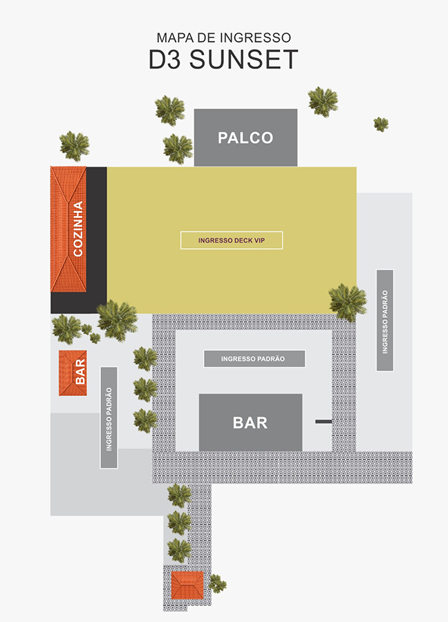 Se liga porque tem 2 modelos de ingressos: o Ingresso Deck Vip (area do deck em frente ao palco) e o Ingresso Padrão que circula por todo o restante da casa.